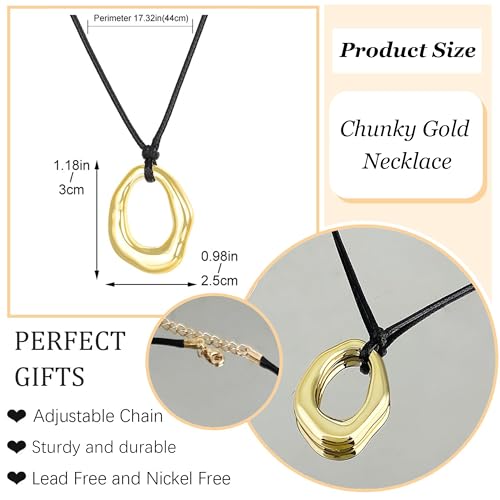 • Gold Charm Necklace:This gold pendant necklace is simple and elegant, black leather chain and chic hanging classic irregular big pendant, unique and versatile.