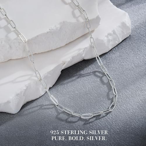 IEFWELL Solid 925 Sterling Silver Necklace for Women Men - 3.5mm Sterling Silver Paperclip Chain Necklace for Women Hypoallergenic Soft Sturdy Necklaces 16 18 20 22 24 inches Jewelry Gifts for Her 6