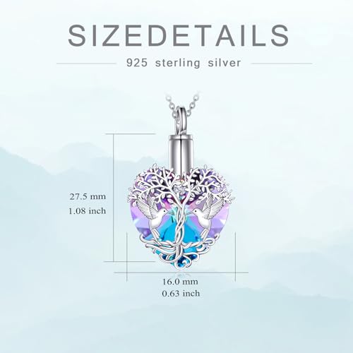 POPKIMI Hummingbird Urn Necklace for Ashes Sterling Silver Crystal Cremation Jewelry