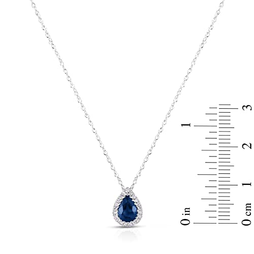 - 14K White Gold, 7/8Ct Carat Genuine Pear Shape Sapphire, 1/20Ct Diamonds, 18" Chain