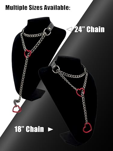 Material: Faux LeatherMetal type: ZincClasp type: BuckleChain type: CubanGem type: No GemstoneItem type name: Choker NecklacesElegant & Modern Design: Our choker collar combines minimalist aesthetics with a touch of edgy sophistication, featuring a durable electroplated polished alloy chain and a delicate heart-shaped O-ring as the centerpiece, exuding personality. Crafted with 3/4-inch vegan leather in black/pink/red, paired with nickel-free hardware in silver, gold, or gunmetal, it is both stylish and versatile, effortlessly elevating any outfit.Premium Vegan Leather & Durable Chain: Made from high-quality, soft vegan leather with polished edges for a smooth, water-resistant finish. The lightweight, rust-resistant electroplated polished alloy chain ensures long-lasting durability and all-day comfort, making it a practical yet fashionable accessory.Fits Multiple Sizes: Designed to fit neck sizes ranging from 13 to 18 inches (33 to 45 cm), with an adjustable leather strap range of 10.5 to 13 inches (26.7 to 33 cm). The buckle features 6 adjustment holes spaced 1/2 inch apart for a perfect fit. The chain is 0.39 inches (approximately 10 mm) wide and 11 inches long, complemented by a 1.4-inch (35 mm) heart-shaped ring, offering a bold yet elegant look.Easy Care & Maintenance: Simply wipe clean with a damp cloth to keep your choker looking fresh. Store in a cool, dry place away from direct sunlight, and avoid contact with water or harsh chemicals to maintain the leather's quality and longevity.Customer Satisfaction Guaranteed: We take pride in our handmade products and are committed to your satisfaction. If you have any questions or concerns about our choker, please feel free to contact us. Your feedback is invaluable to us, and we are constantly improving our products to ensure you have the best experience possible. Perfect for everyday use. High quality materials and excellent craftsmanship ensure long-lasting durability.