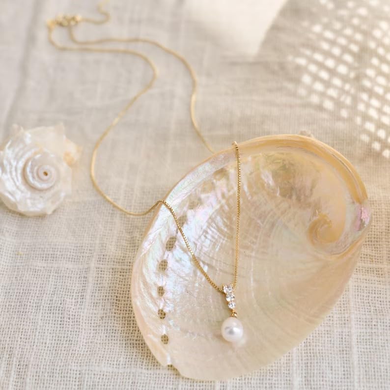 • Fasionable Design: This Minimalist Freshwater Pearl Necklace with Diamond blends timeless elegance with a heartfelt connection. The design features three dazzling zircon stones, arranged in a delicate gradient from small to large, leading to a luminous freshwater pearl. The combination of these elements evokes a sense of growth, love, and special milestones—perfect for weddings, Mother's Day, or as a meaningful gift for bridesmaids.