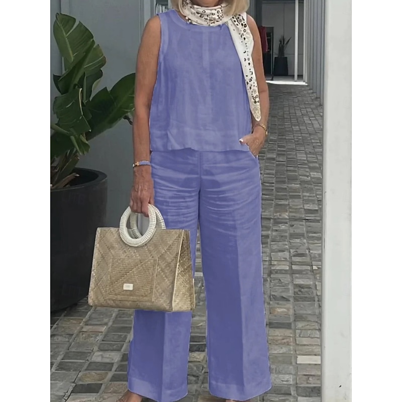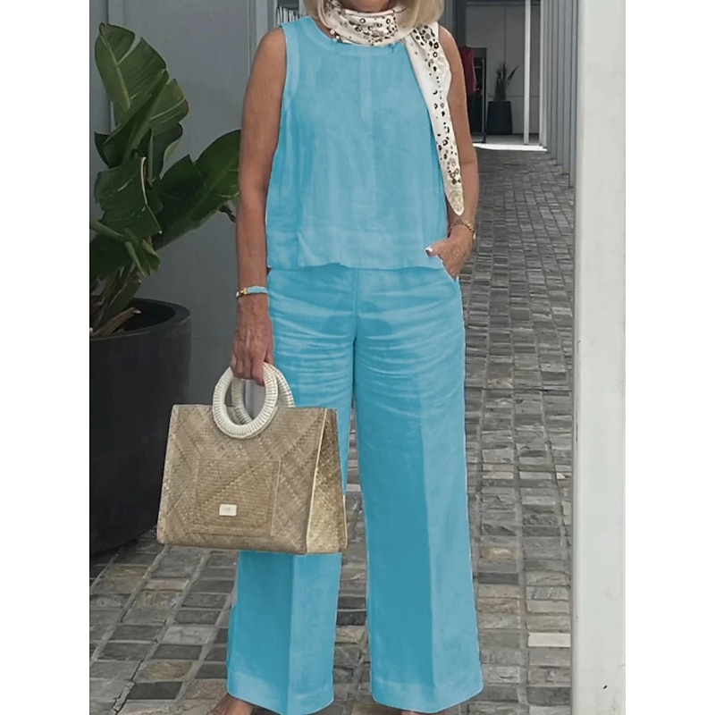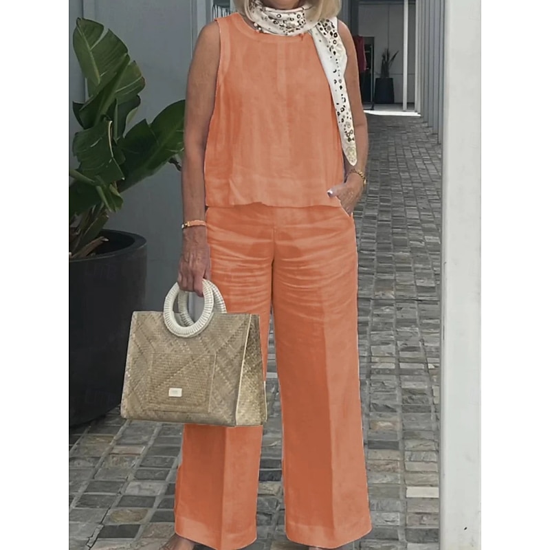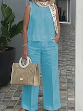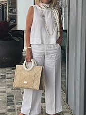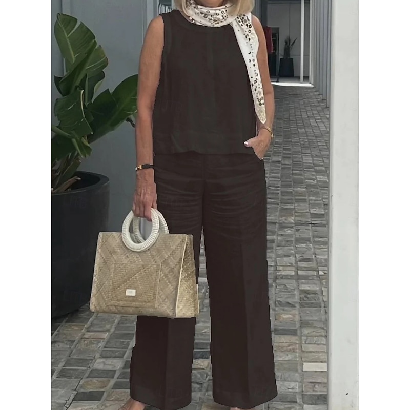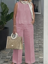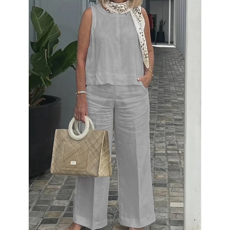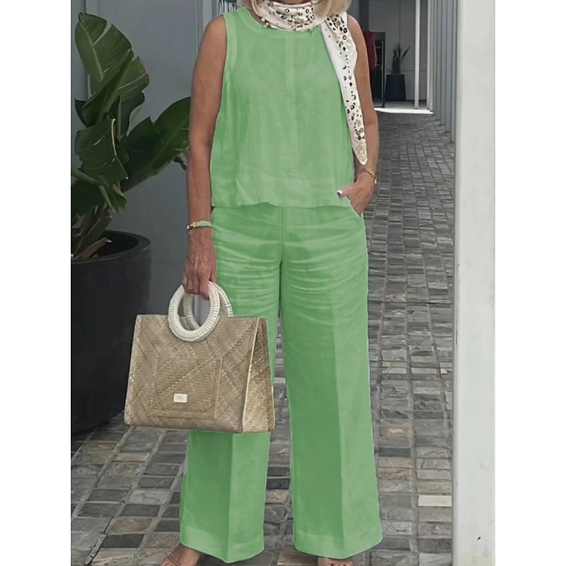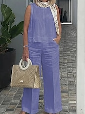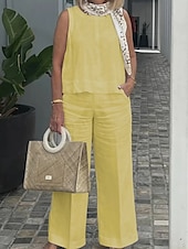 This Women's Active Basic Cotton Linen Sets Sleeveless Crew Neck Solid Color Casual Daily Black White Yellow Summer Regular Fit combines elegant design with practical functionality. Every detail has been carefully considered to ensure you get the best possible experience. The high quality construction means this product will serve you well for years to come.