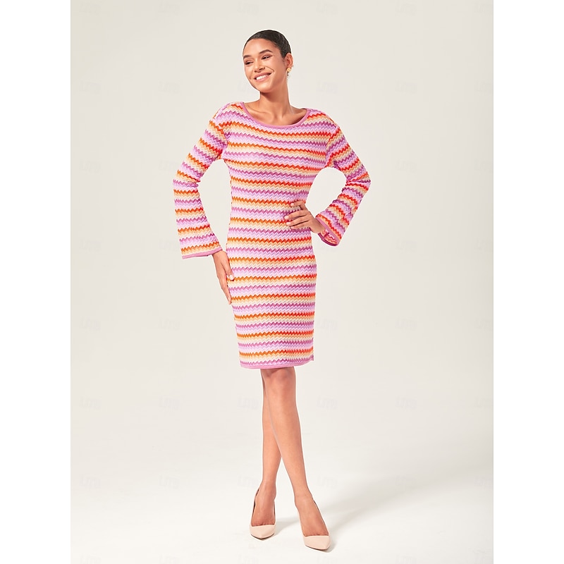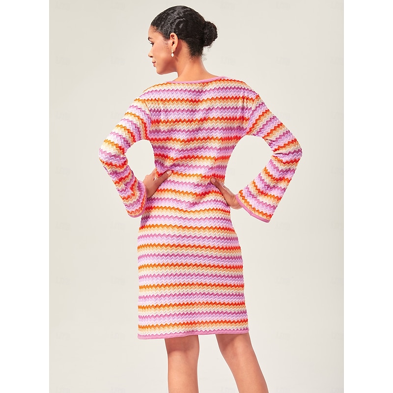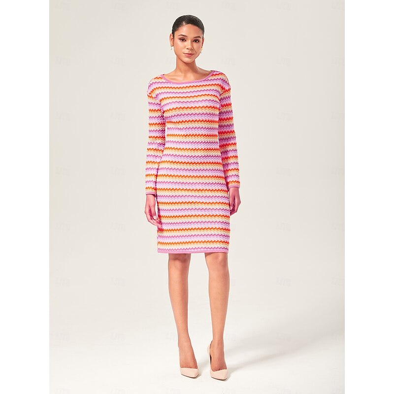 $86.99 - Women's Elegant Rainbow Wave Stretch Knit Fitted Mini Dress Chic Bodycon Style with Colorful Flair 2025. Shop for cheap Vacation Dresses online? Buy at lightinthebox.com on sale today!