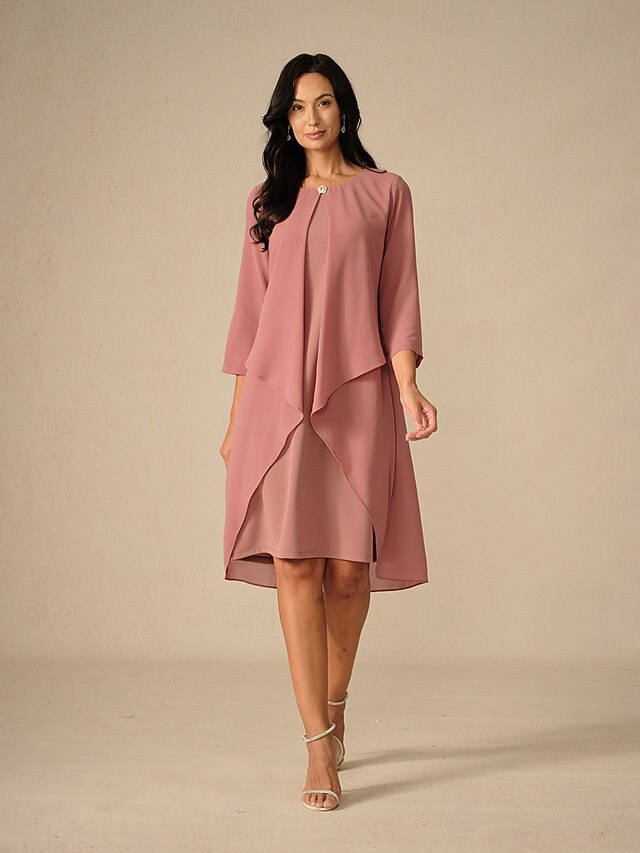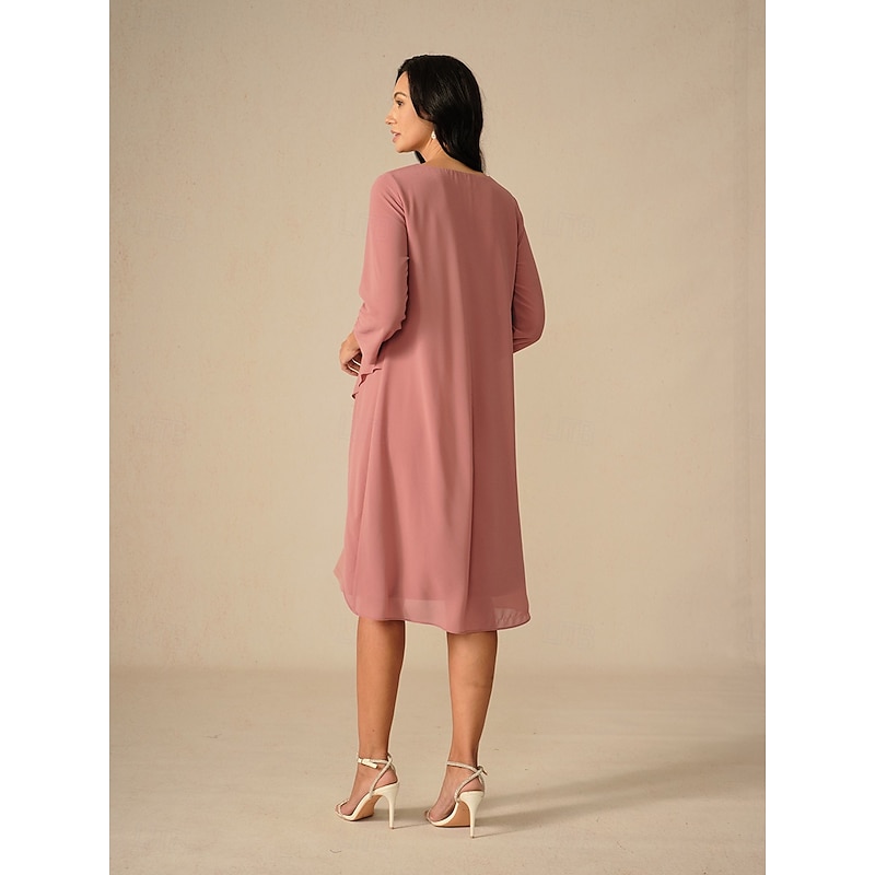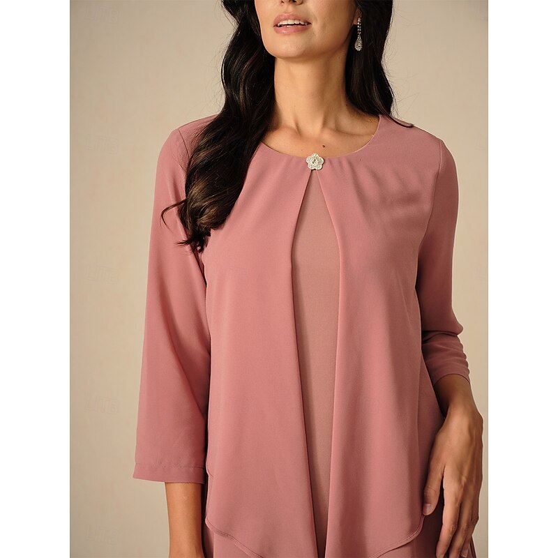 More information about Women's Midi Dress A Line Dress Chiffon Party Birthday Cocktail Wedding Guest Cocktail Party Regular Fit Solid Color 3/4 Length Sleeve Crew Neck Pink Summer