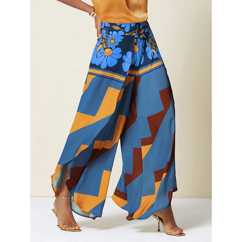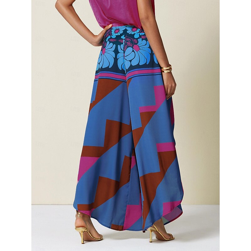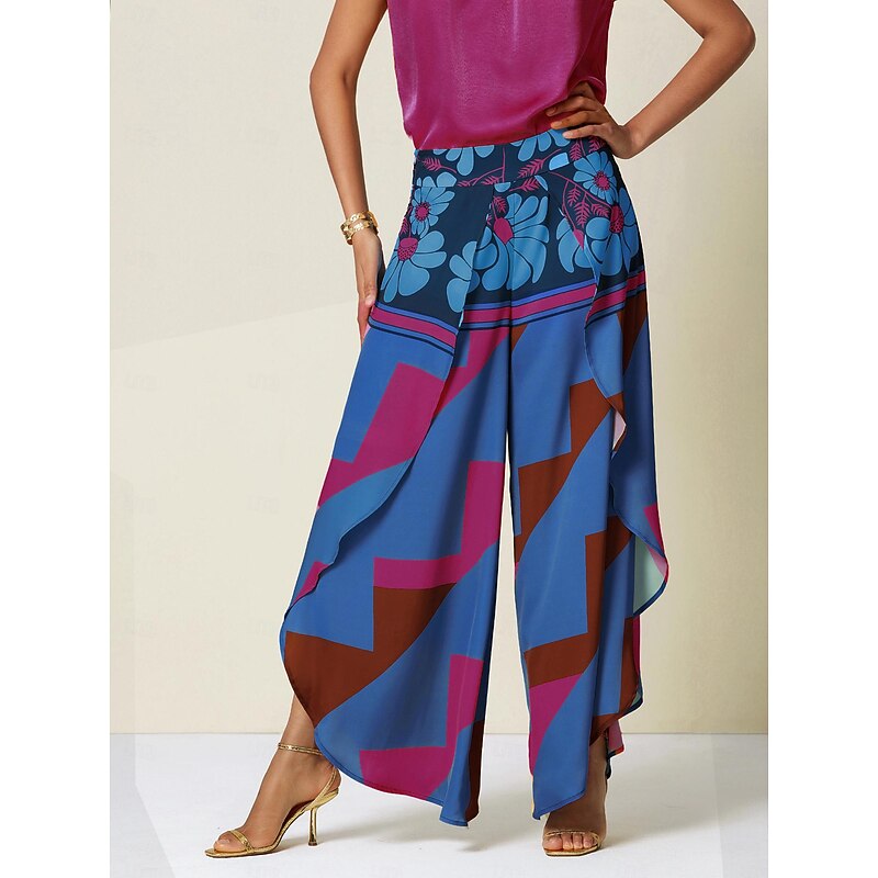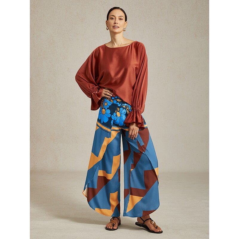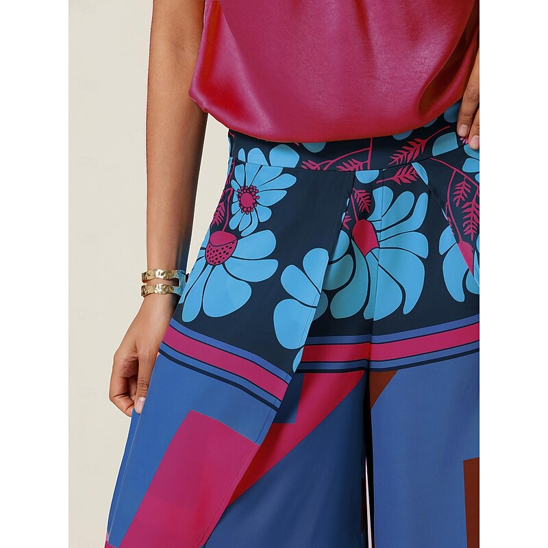 Women's Swing Full Length Satin Micro-elastic Pants Birthday Weekend Blue Rose Red Spring & Summer S M L 2