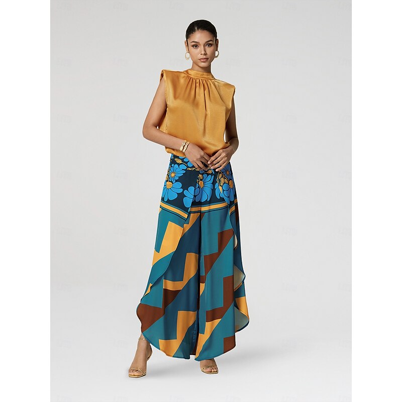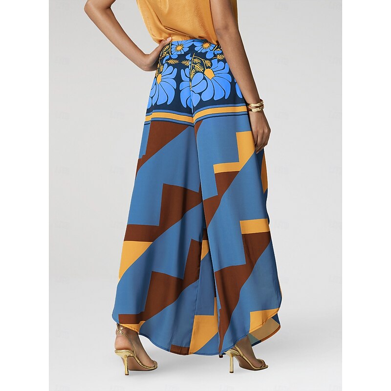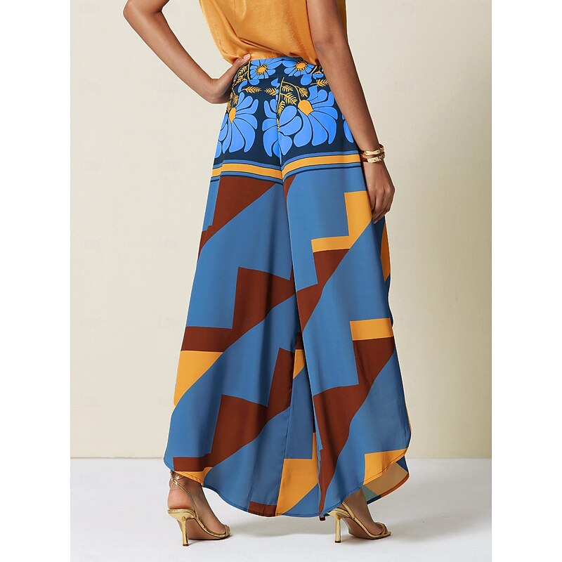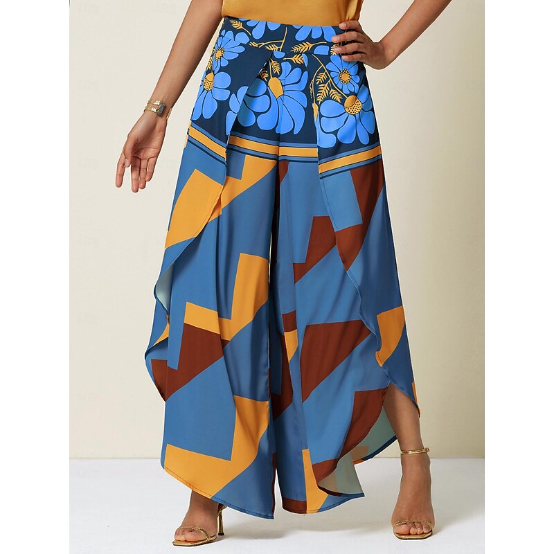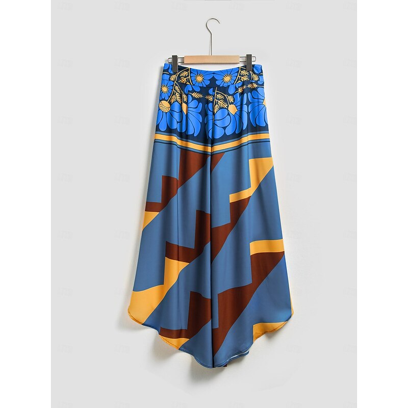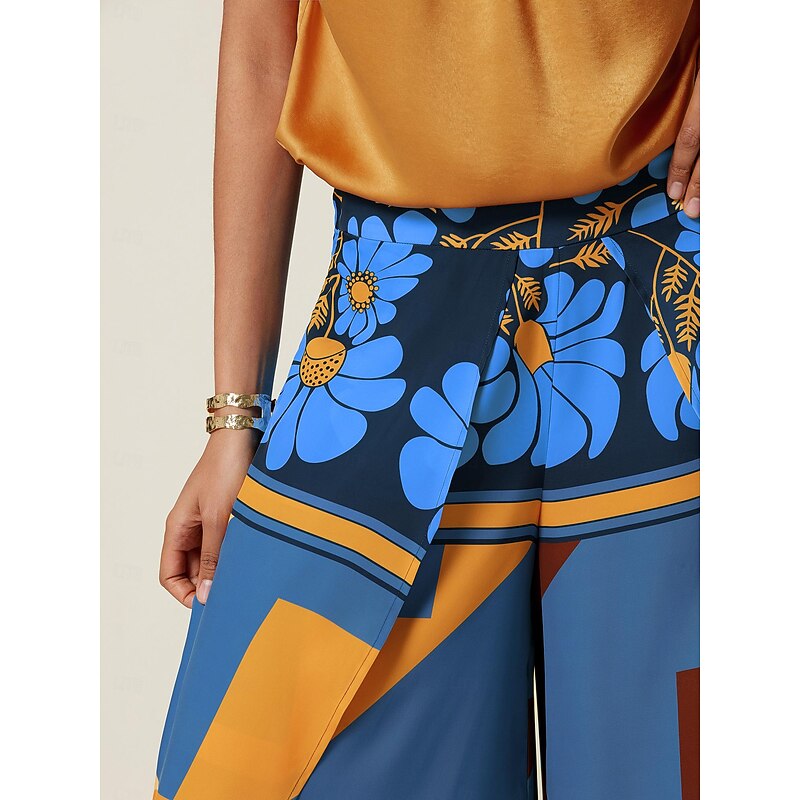 Women's Swing Full Length Satin Micro-elastic Pants Birthday Weekend Blue Rose Red Spring & Summer S M L 2