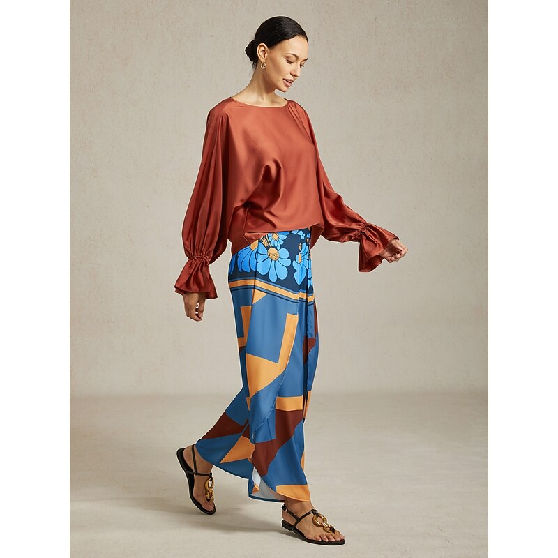 More information about Women's Swing Full Length Satin Micro-elastic Pants Birthday Weekend Blue Rose Red Spring & Summer S M L