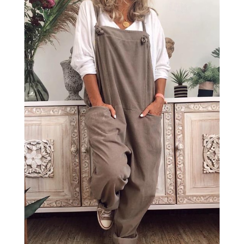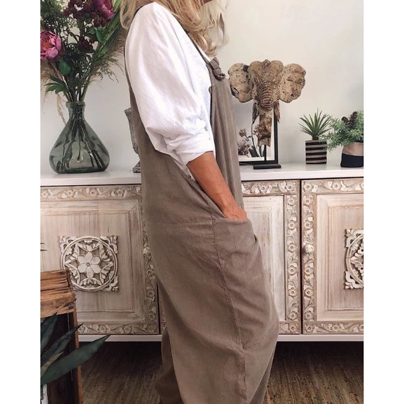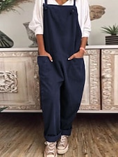 More information about Women's Normal Cotton Linen Pants Streetwear Solid Color Sleeveless U Neck Pocket Street Daily Regular Fit Black Navy Blue Khaki Summer