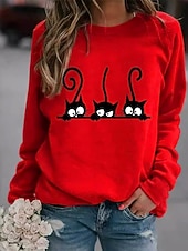 This Women's Pullover Sweatshirt Graphic Animal Cat Fashion Casual Long Sleeve Round Neck Regular Tops Street Dailywear Casual Print Maroon Black Wine Red Fall Winter combines elegant design with practical functionality. Every detail has been carefully considered to ensure you get the best possible experience. The high quality construction means this product will serve you well for years to come.