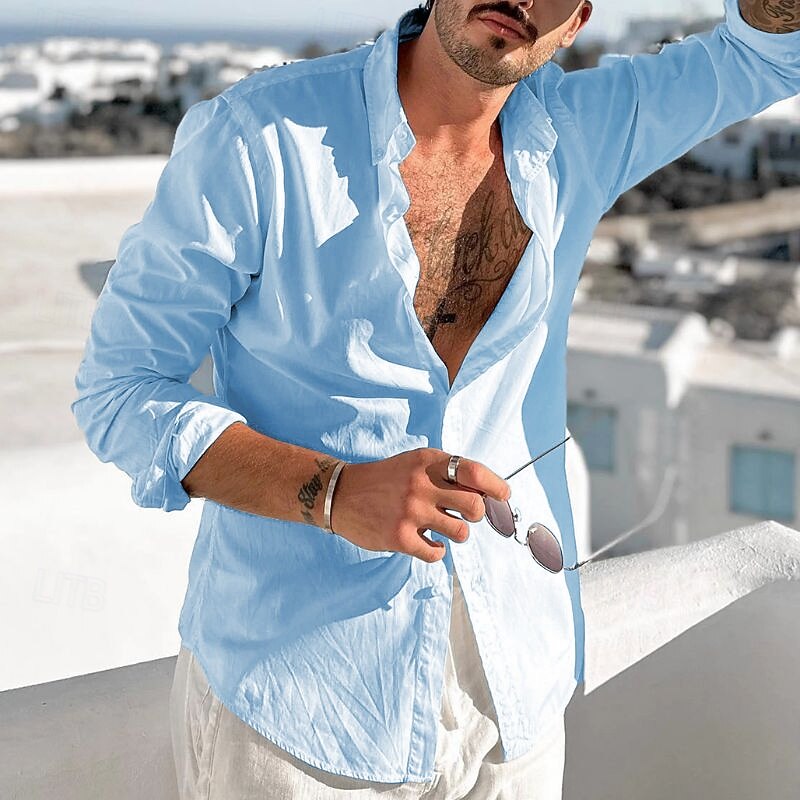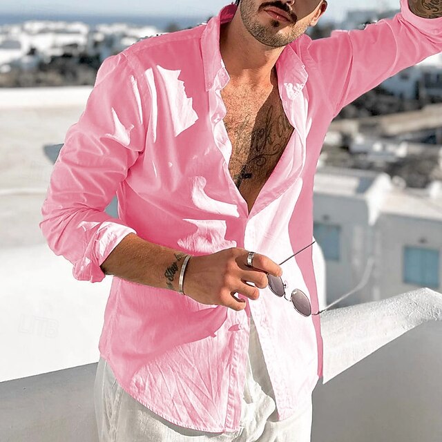 This Men's Casual Shirt Cotton Linen Shirt Button Up Shirt Solid / Plain Color Vacation Street Black White Pink Sky Blue Long Sleeve Lapel All Seasons Clothing Apparel Buttons combines elegant design with practical functionality. Every detail has been carefully considered to ensure you get the best possible experience. The high quality construction means this product will serve you well for years to come.