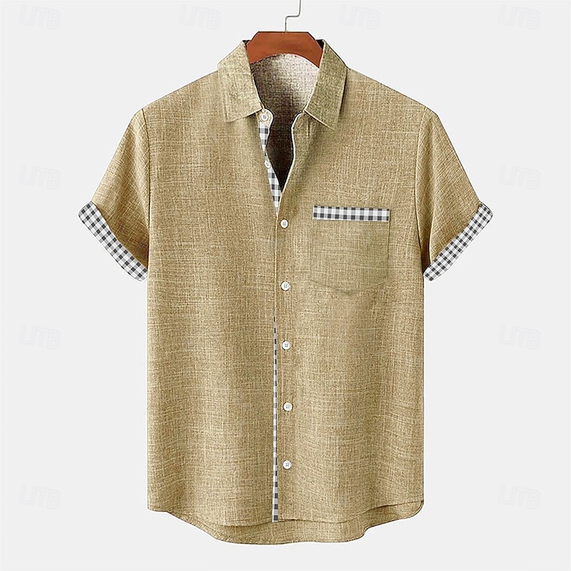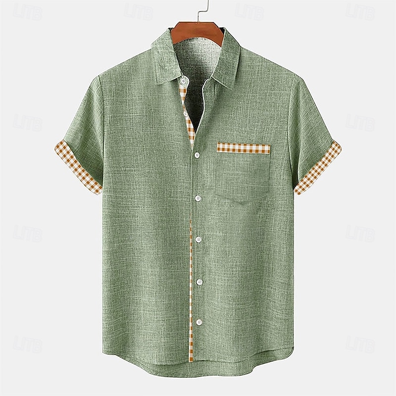More information about Men's Shirt Linen Shirt Summer Shirt Beach Shirt Untucked Shirts Plaid Vacation Holiday Yellow Blue Green Short Sleeve Collar Summer Clothing Apparel