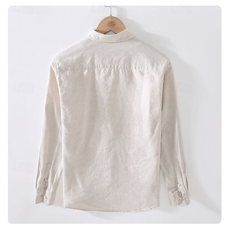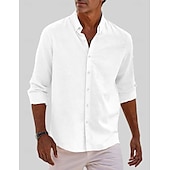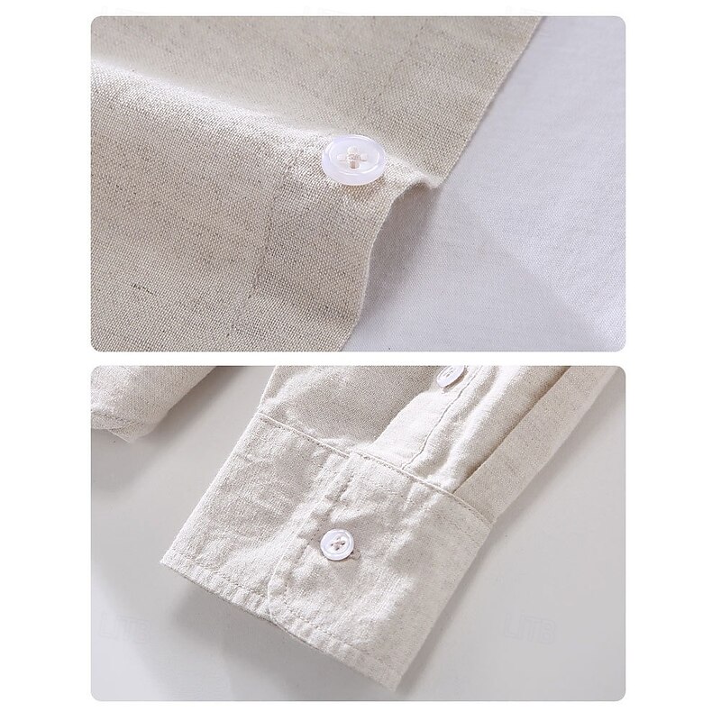 More information about Men's Classic Beach T Shirt Casual Shirt Standard Fit Long Sleeve Lapel Solid Color Cotton Linen White Beige Grey 2025