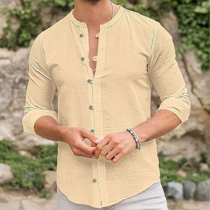 This Men's Shirt Linen Shirt Summer Shirt Beach Wear Button Up Shirt Plain Vacation Street Black White Sky Blue Orange Long Sleeve Stand Collar Summer Spring Clothing Apparel Buttons combines elegant design with practical functionality. Every detail has been carefully considered to ensure you get the best possible experience. The high quality construction means this product will serve you well for years to come.