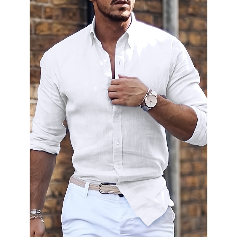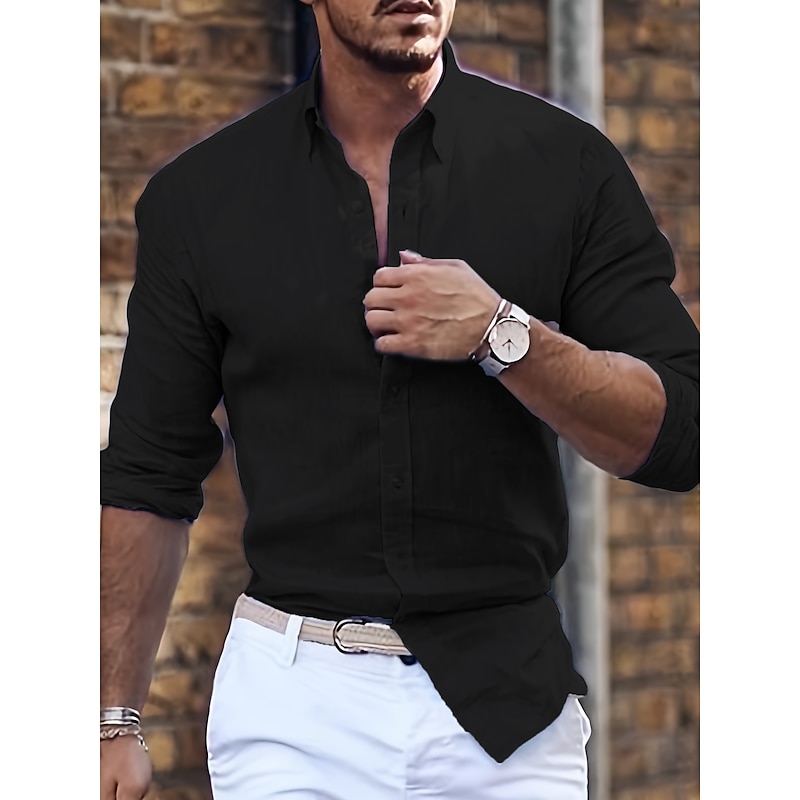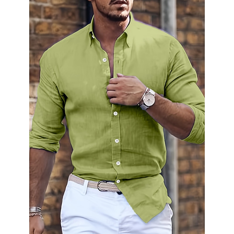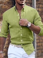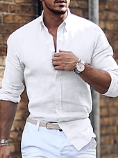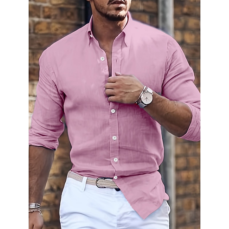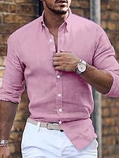 More information about Men's Shirt Summer Shirt Casual Shirt Button Up Shirt Black White Pink Blue Green Long Sleeve Plain Lapel Vacation Daily Clothing Apparel Cotton Cotton Blend Fashion Casual Comfortable