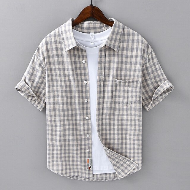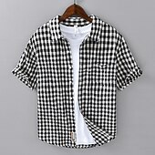 Highlights - Perfect for summer vacation - Short-sleeve design for added comfort - Casual yet stylish for men - Features a trendy plaid pattern - Convenient pocket design - Lapel neckline adds a touch of sophistication