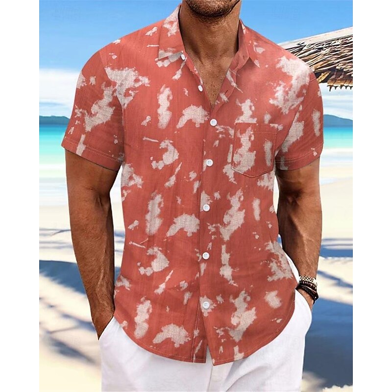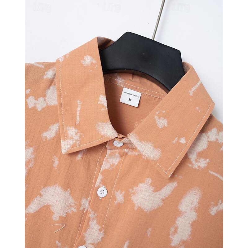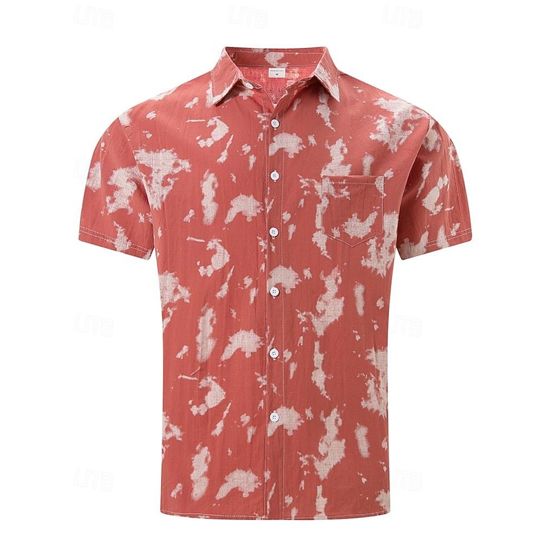 More information about Men's Shirt Summer Shirt Casual Shirt Beach Shirt Button Up Shirt Light Green Pink Wine Orange khaki Short Sleeve Tie Dye Lapel Vacation Hawaiian Front Pocket Clothing Apparel Fashion Casual
