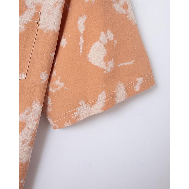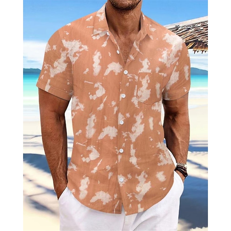 Men's Shirt Summer Shirt Casual Shirt Beach Shirt Button Up Shirt Light Green Pink Wine Orange khaki Short Sleeve Tie Dye Lapel Vacation Hawaiian Front Pocket Clothing Apparel Fashion Casual 23