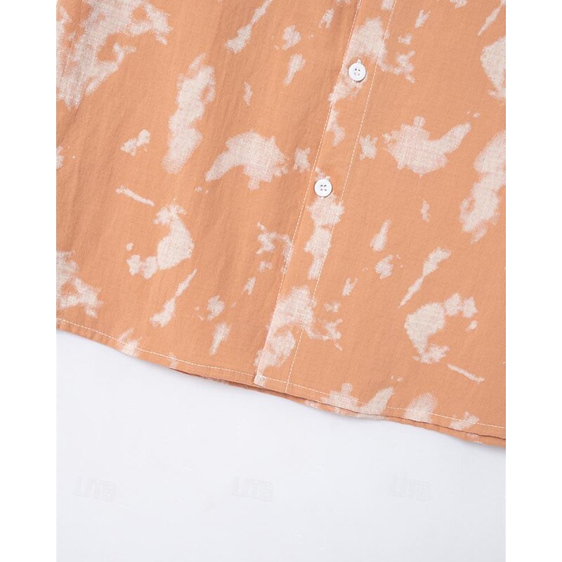 Men's Shirt Summer Shirt Casual Shirt Beach Shirt Button Up Shirt Light Green Pink Wine Orange khaki Short Sleeve Tie Dye Lapel Vacation Hawaiian Front Pocket Clothing Apparel Fashion Casual 5