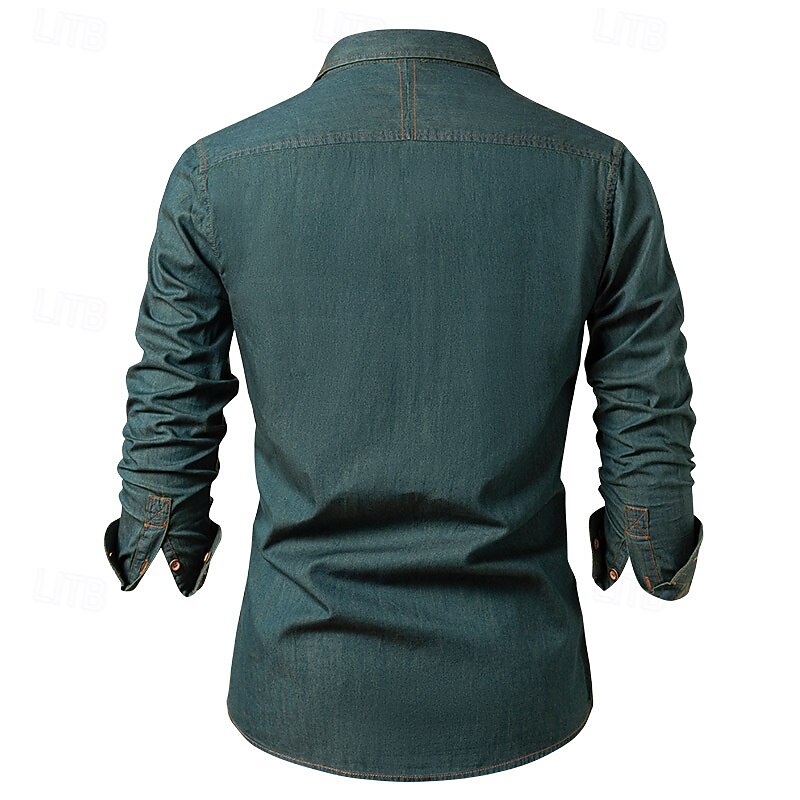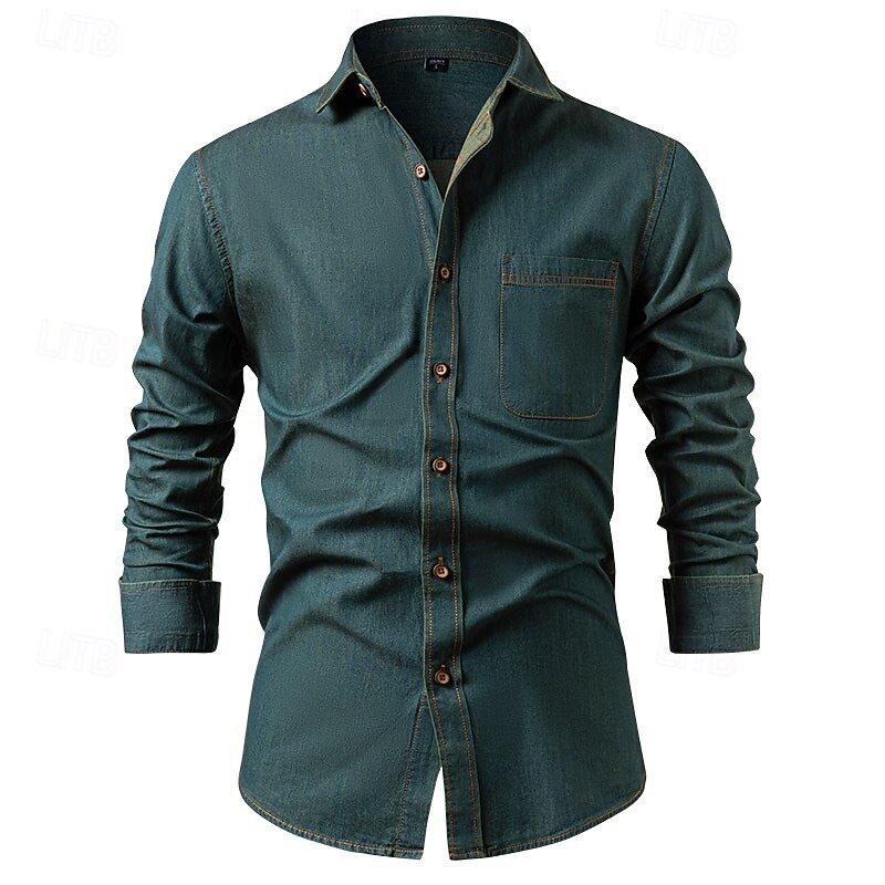 Highlights - Stay stylish and comfortable with this long sleeve men's casual shirt - Perfect for your next vacation or getaway - Features a unique pocket design and trendy lapel neckline