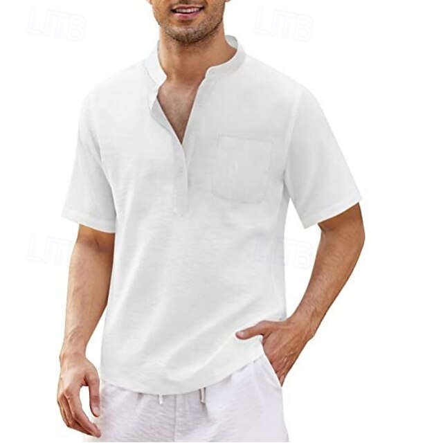 More information about Men's Shirt Summer Shirt Casual Shirt Beach Shirt Button Up Shirt Black White Blue Deep Blue Army Green Short Sleeve Plain Standing Collar Vacation Hawaiian Pocket Clothing Apparel Polyester Fashion
