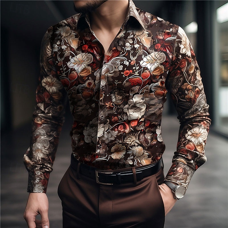 HOT ! Easter Men's Floral Shirt Button Up Shirt Long Sleeve Casual Daily Wear Weekend Fall & Winter Turndown Print Button-Down Black Yellow Red Brown Black+White