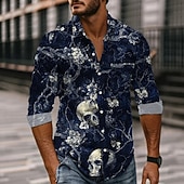 More information about Men's Skull Day of the Dead Rose Shirt Button Up Shirt Long Sleeve Dark Gothic Style Holiday Spring Fall Turndown 3D Print Collared Shirts Front One Pocket Red Dark Blue