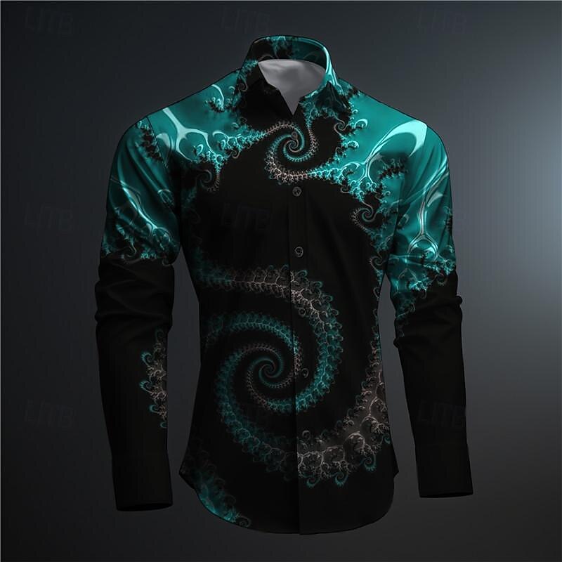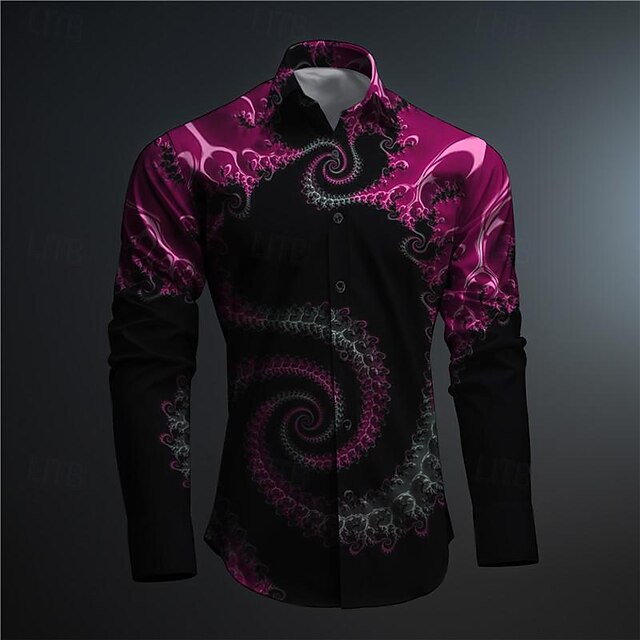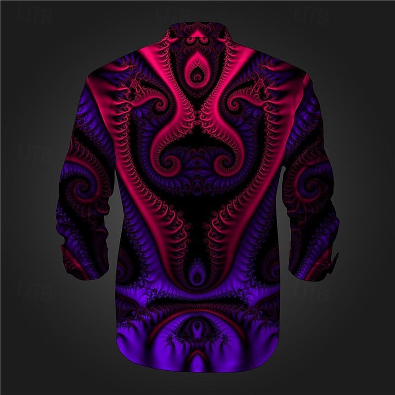 Men's Button Up Shirt Printed Shirts Long Sleeve Subcultural Vacation Party Street Spring & Summer Turndown Print Button-Down Black Red Blue Purple Fuchsia 12