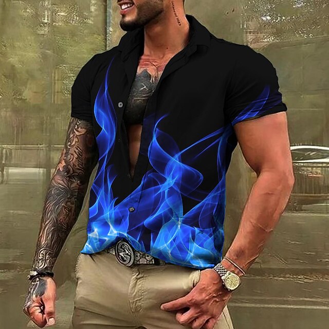 More information about Men's Shirt Button Up Shirt Short Sleeve Fashion Streetwear Designer Casual Daily Weekend Summer Spring Turndown Print Button-Down Blue Orange Green Light Blue