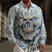More information about Halloween Men's Skeleton Frozen Ice skull Shirt Button Up Shirt Long Sleeve Dark Gothic Style Holiday Streetwear Spring Fall Turndown 3D Print Collared Shirts Blue