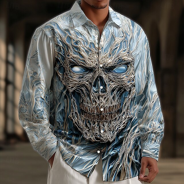 $25.99 - Halloween Men's Skeleton Frozen Ice skull Shirt Button Up Shirt Long Sleeve Dark Gothic Style Holiday Streetwear Spring Fall Turndown 3D Print Collared Shirts Blue 2025. Shop for cheap Halloween Shirts online? Buy at lightinthebox.com on sale today!