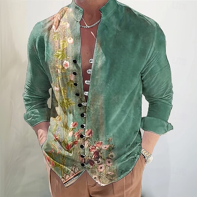 This Men's Floral Print Flowers Shirt Stand Collar Shirt Long Sleeve Casual Vacation Daily Wear Going out Spring Fall Mandarin Collar Band Collar Button-Down Linen Like Shirt Green combines elegant design with practical functionality. Every detail has been carefully considered to ensure you get the best possible experience. The high quality construction means this product will serve you well for years to come.