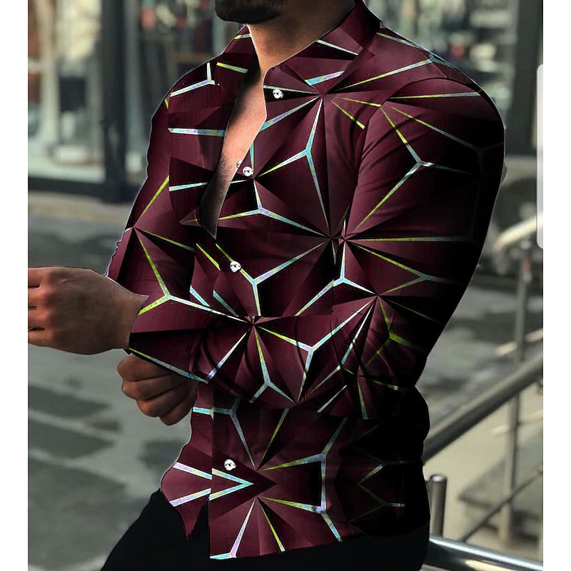 More information about Men's Geometric Pattern Geometry Shirt Button Up Shirt Long Sleeve Fashion Designer Casual Outdoor Vacation Daily Fall & Winter Collar 3D Print Button-Down Black White Pink Orange Green