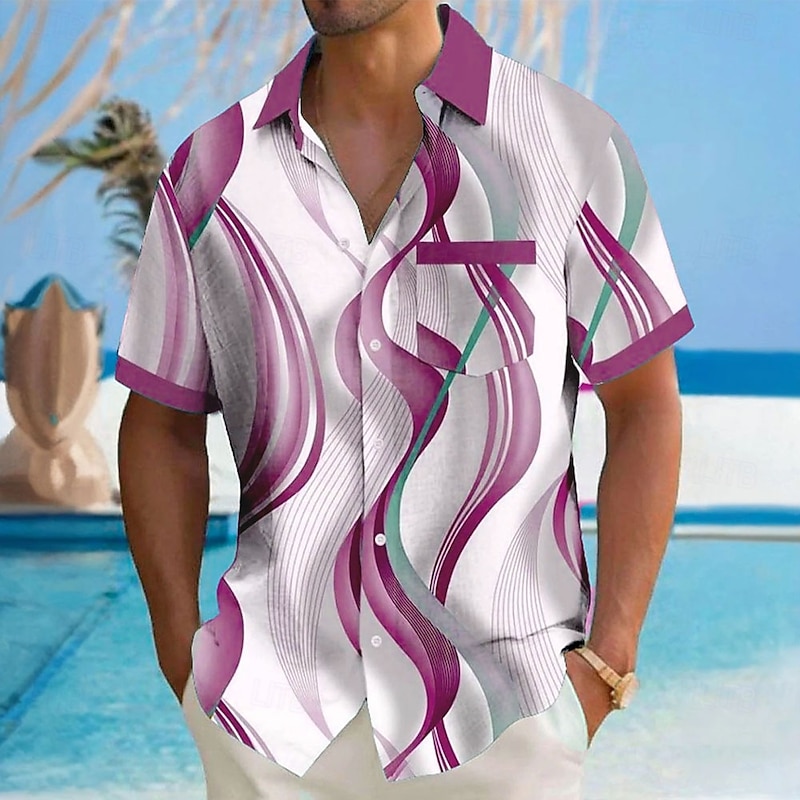 Why Choose Men's Optical Illusion Geometic Line Shirt Button Up Shirt Short Sleeve Fashion Casual Vacation Holiday Beach Wear Summer Fall Turndown 3D Print Collared Shirts Front One Pocket Blue Purple Green?