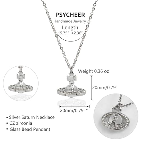 Saturn Pendant Necklace for Women Glass Bead Pendant Necklace Sweater Chain Jewelry for Women Planetary Element Necklace Jewelry for Mother Wife Sister Daughter