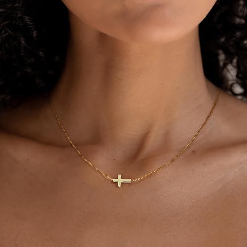 Cross Necklace for Women, Dainty Gold Necklace 14K Gold Plated Cute Small Cross Choker Necklaces for Women Trendy Simple Charm Gold Pendnat Fashion Womens Jewelry 4