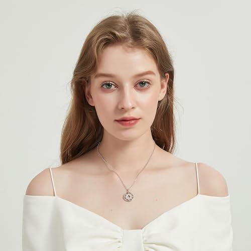 THELANDA Genuine Moissanite Sterling Silver Round Sun in Circle Pendant Necklace, Adjustable 18-20 Inch Chain with Lobster Clasp, Unisex Fine Jewelry Gift for Women and Men