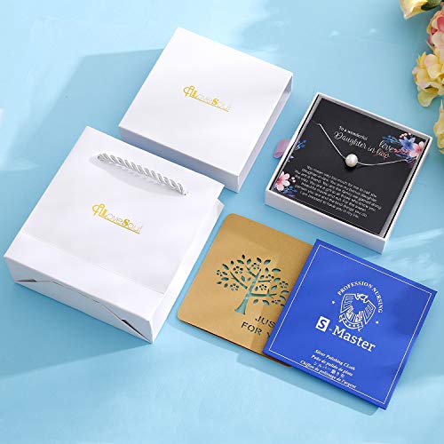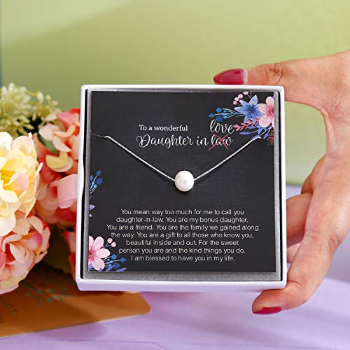 Item display length: 50 centimetersMaterial: MetalMetal type: SilverChain type: BoxGem type: No GemstoneMaterials: The necklace is made of 925 sterling silver and pearls, The pearls are genuine and have been extracted from pearl oysters, exhibiting great quality and fine workmanship which gives it a shiny appearance. This necklace will not cause skin irritation making it wearable for extended periods. It comes with a strong chain that will not easily break.Daughter in law gifts: The single pearl necklace is very cute, reminding her that her future life will be more beautiful and promising. It makes a perfect birthday gift for your Bonus Daughter, and will definitely make her happy!Included items: The package includes a heartfelt gift card. Additionally, we present a stylish hollow handwritten card on which you can write anything you desire. Besides this, there is a silver polishing cloth as well as a gift box to prepare it for gifting.Size Information: Chain total length of 17.71. Each freshwater pearl has a diameter of approximately 8mm. This chain length works for practically anyone!ALoveSoul Descriptions: Our store mainly focuses on necklaces and specializes in developing accessories for various festivals, such as birthdays, anniversaries, St. Patrick's Day, graduation season, Nurse's Day, Thanksgiving, Halloween, Christmas and other major holidays that we design themed jewelry for. Thank you for your interest, and we look forward to seeing you again soon. Perfect for everyday use. High quality materials and excellent craftsmanship ensure long-lasting durability.