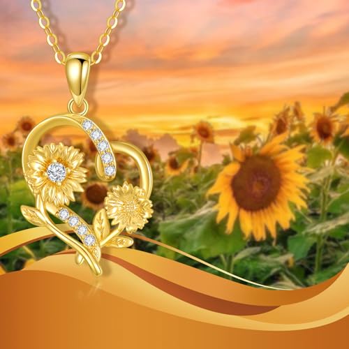 HOT ! SISGEM 14K Real Gold Sunflower Heart Necklaces for Women,You Are My Sunshine Yellow Sunflower Pendant with Loving Heart Necklaces Jewelry Gift for Her, Gold Chain 18"