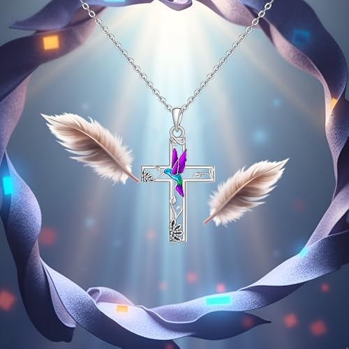 Hummingbird Necklace Sterling Silver Hummingbird Jewelry for Women Cross Necklace for Women Men Sunflower Pendant Birthday Christmas Gifts 5