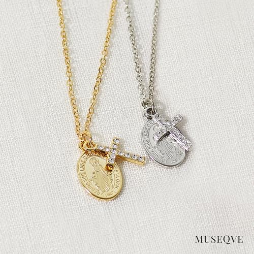 Cross and Miraculous Medal Necklace • Virgin Mary Coin Pendant Catholic Necklace for Women Kids • 14K Gold Plated Non Tarnish Dainty Religious Jewelry [CXN-MC] 1