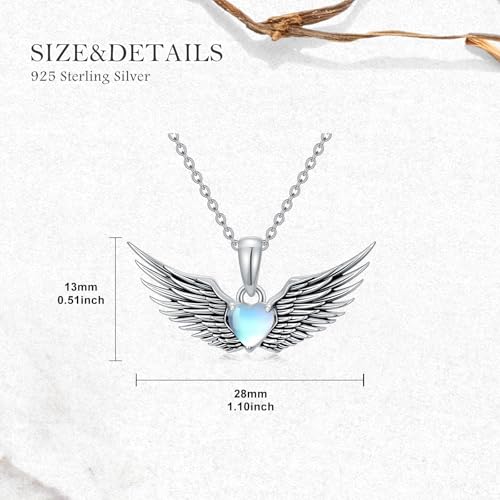 Angel Wings Necklace for Women 925 Sterling Silver Moonstone Guardian Angel Wing Pendant Ladies Jewelry Gifts 4