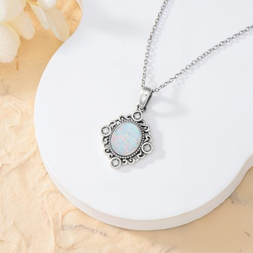 • 【High-quality materials】Made of 925 sterling silver and oxidized to present a vintage and exquisite look. The gemstones are white opals and lab-grown diamonds. It does not contain nickel, lead or cadmium and is hypoallergenic. High-quality materials ensure the durability and exquisiteness of the necklace.