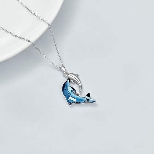 TOUPOP Dolphin Gifts Sterling Silver Dolphin Pendant Necklace Blue Crystal Dolphins Jewelry Summer Beach Themed Gifts for Women Birthday Christmas 5