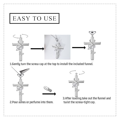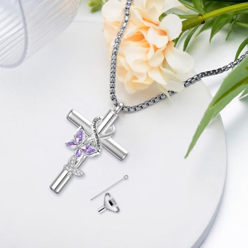 Birthstone Butterfly Cross Urn Necklaces for Ashes White Gold Plated Sterling Silver Cremation Keepsake Necklace w/Funnel Filler Memorial Pendant for Ashes for Human Women Pet 5