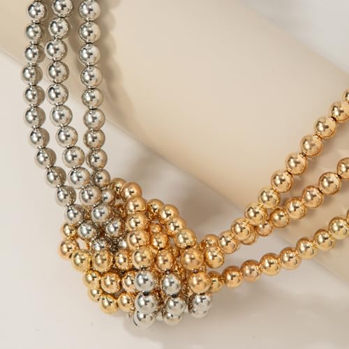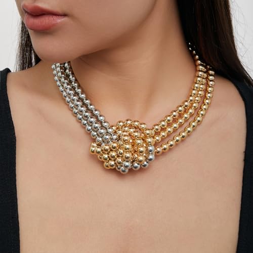 • [Vintage Layered Pearl Choker Necklace]Experience timeless grace with our fashion-forward vintage layered pearl choker necklace. Featuring chunky adjustable knots and round pearls, this statement piece adds a touch of sophistication to any outfit. Best for women who love a mix of classic and modern styles