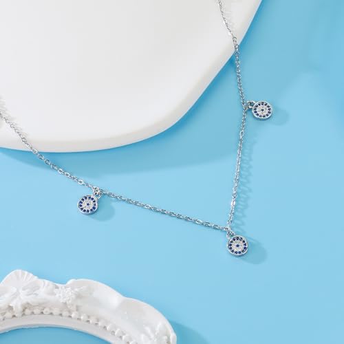SmileBelle Evil Eye Necklace Silver, Protection Necklace for Women Silver Charm Choker Handmade Evil Eye Turkish Jewelry with Third Nazar Ojo Turco as Silver Jewelry Beach Accessories 3