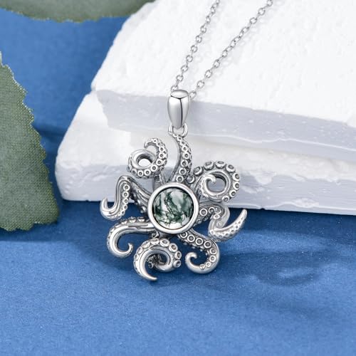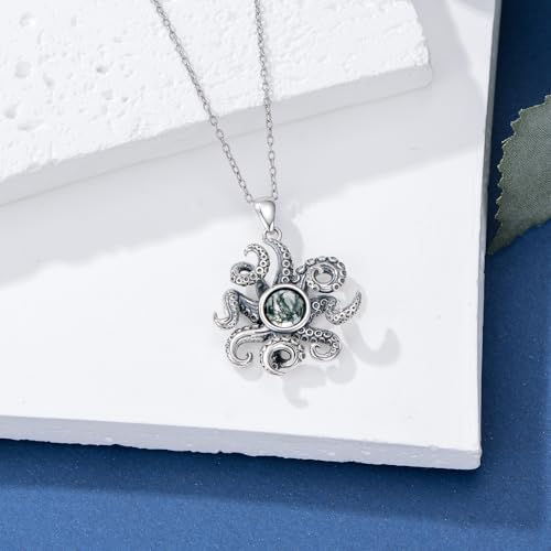• 🐙 Specification of Octopus Necklace:Moss agate pendant size: 22*24 mm, with an adjustable sterling silver cable chain. This moss agate octopus necklace is well packaged in a jewelry box with a silver polishing cloth, perfect for any special occasion.