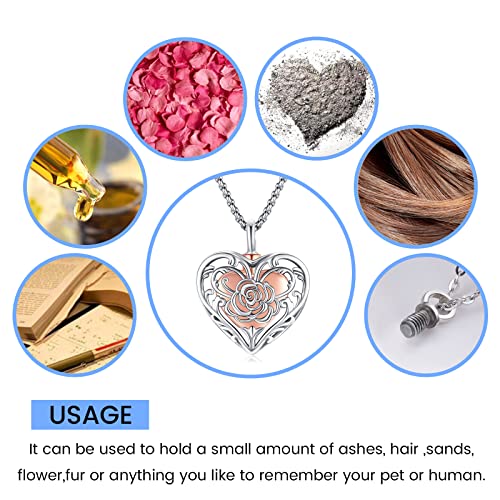 Material: Sterling SilverMetal type: Sterling SilverClasp type: BoxChain type: BoxGem type: No GemstoneItem type name: Pendant Necklaces⚫ Unique design that incorporates the elements of hearts and flower, made of 925 sterling silver plated with rose gold. Purely handmade, the hollowing as well as the relief carving process is very complex. Rose express for true love and beauty. Keep someone to your heart and share your sadness, happiness, fear with it, it will give you encouragement.⚫ CHAIN LENGTH:20+2 = 56 cm | PENDANT WEIGHT:Approximately 7.2 Grams | PENDANT HEIGHT:0.9 = 23 mm | PENDANT WIDTH: 0.79 = 20 mm | LOBSTER-CLAW CLOSURE⚫ Lead-free, nickel-free, cadmium-free and skin-friendly. Passed SGS Inspection. Suitable for people with sensitive skin. On every memorable day, choose this lovely gift to give to the person you care about, and bring her encouragement, love and blessing.⚫ Urn necklace for ashes cremation keepsakes memorial jewelry, real 925 sterling silver ashes necklace are safe and reliable, each urn pendant necklace comes with funnel and funnel pin, you can easily fill ashes inside.⚫ The heart urn necklace is not only an urn cremation to hold the ashes of your loved ones, but also a container you can store small grains of your favorite things of your hometown or the place you travel, for storing some items as a souvenir, like perfume or sand, small pieces dried flowers, special messages, hair.That will help keep memories of your loved ones near to your heart.⚫ CUSTOMER SATISFACTION FIRST, for all Eusense 925 sterling silver Memorial Ashes Necklaces, If you have any question, please feel free to contact us, we will do our best to help you. Perfect for everyday use. High quality materials and excellent craftsmanship ensure long-lasting durability.