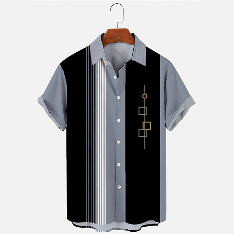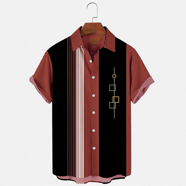 More information about Men's Color Block Geometric Pattern Summer Shirt Casual Shirt Bowling Shirt Short Sleeve Fashion 1950s Leisure Going out Weekend Summer Turndown Button-Down Red Blue Brown Green Gray
